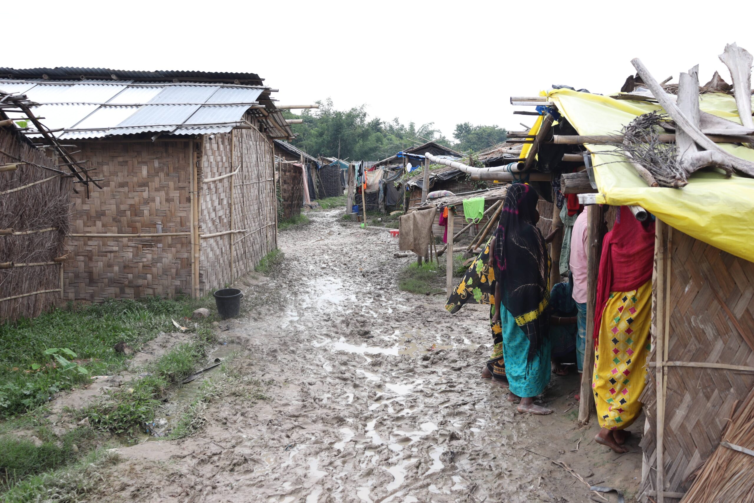 The relief camp gets muddy when it rains. Its inhabitants say rain water often sweeps into their huts making it difficult[/caption]