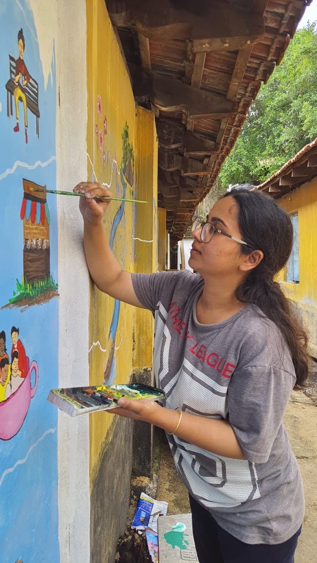Anjum, who lives in Jamia Nagar, a middle-income Muslim-majority enclave near the Yamuna River in Delhi, has been actively involved in art-based community projects in her neighbourhood for the past three years. Anjum's interest in the arts began when she was in elementary school and only grew after she enrolled in the Bachelor of Fine Arts programme at Jamia Millia Islamia. “Later, while in college, I began making handmade products and selling them online to support myself and pay for my art supplies,” she said.