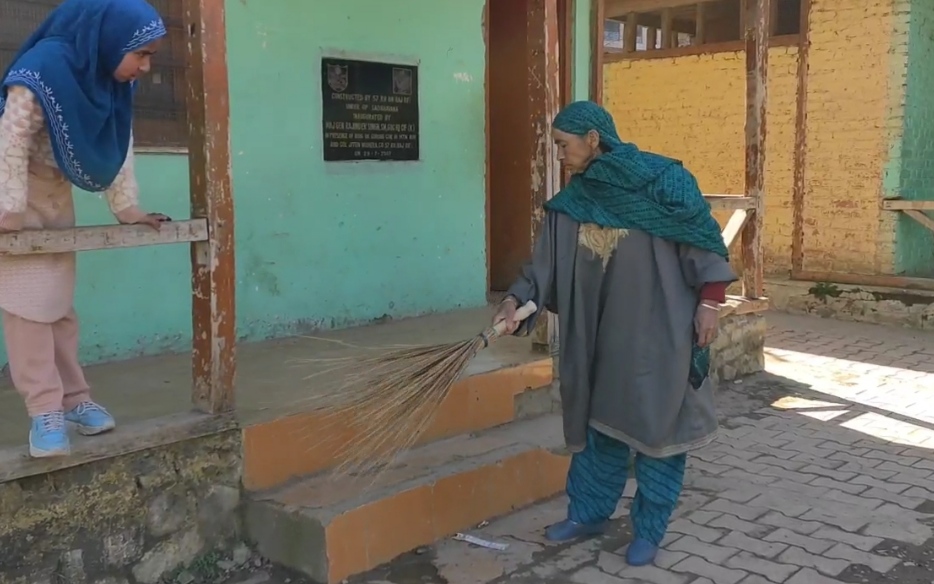 60-year-old Nisara Begum, a sweeper in Middle School Sonerwani of north Kashmir’s Bandipora district has been cleaning the classrooms, washrooms and offices in the school every day since 1995, for which she used to get 75 rupees a month, but since 2016 that is also withheld.