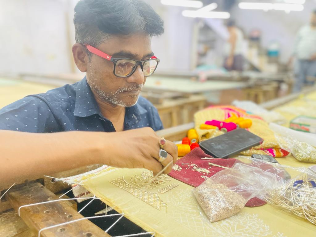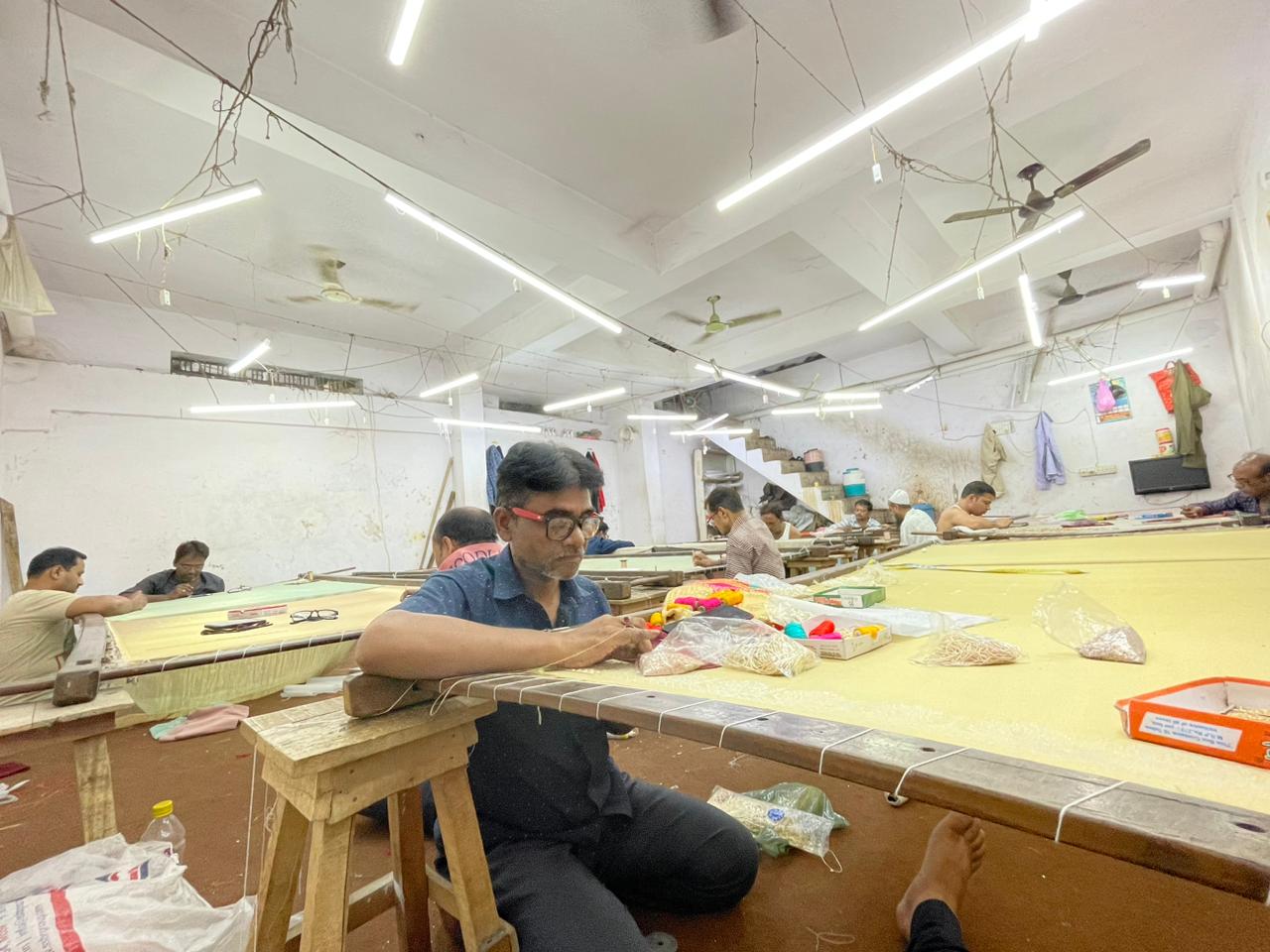 TCN visited old Lucknow, including Kashmiri Mohalla and Rustam Nagar, where in several small one-roomed karkhanas with unplastered walls, male artisans worked on long tables with crochet-like needles or Aari. This backbreaking work requires acute attention and speed.