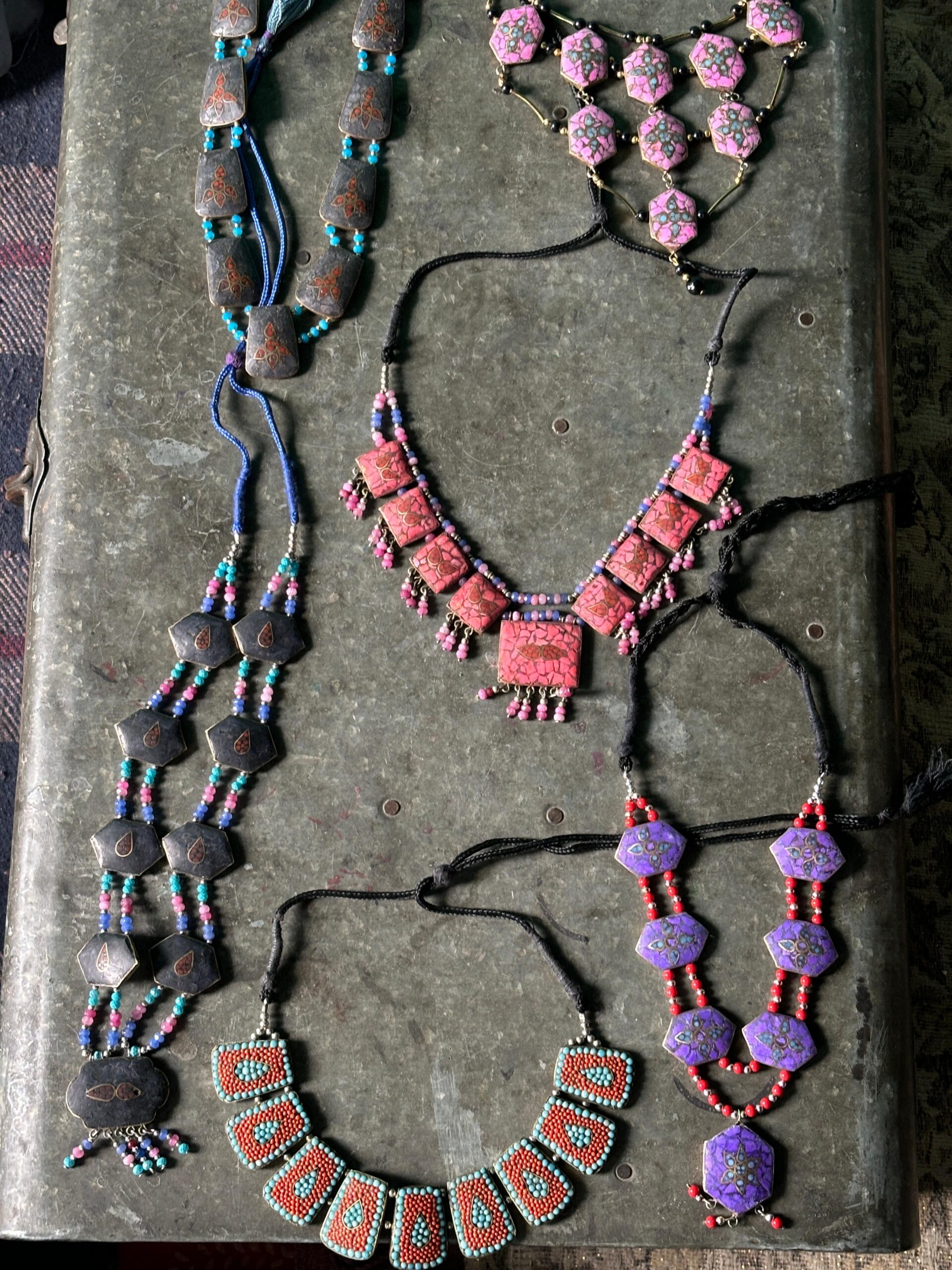 Colourful necklaces from Hanief’s collection. Photo: Aatif Ammad[/caption]