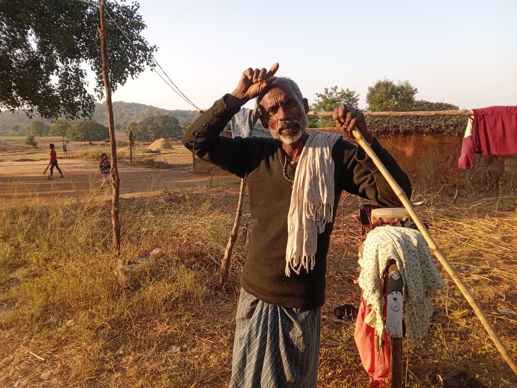 Bhola Kol narrating the pain of water crisis in Kelhadiya village.[/caption]