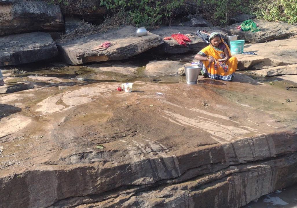 “We have been forced to drink water from chuaad for generations. We will get water till December, but after that, we will have to search for it in the forests. For the last 20-25 years, during elections, candidates and their supporters promise roads, hospitals, tube wells, anganwadis and handpumps. But once they win, they never bother to check on how the villagers are living. We have applied for a solution to the water crisis, but nothing has changed. We are living as if we are already dead. With the water shortage, we cannot even grow crops properly. This time, even our rice crop has been destroyed due to the lack of water,” shares Bhola Kol – a resident of the village.