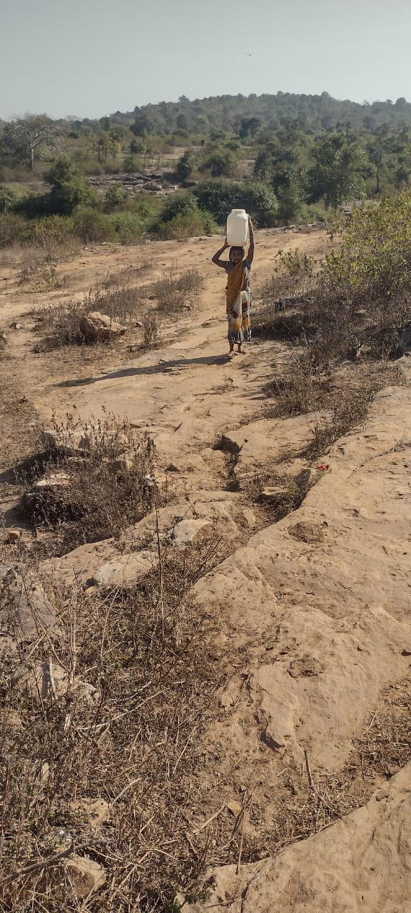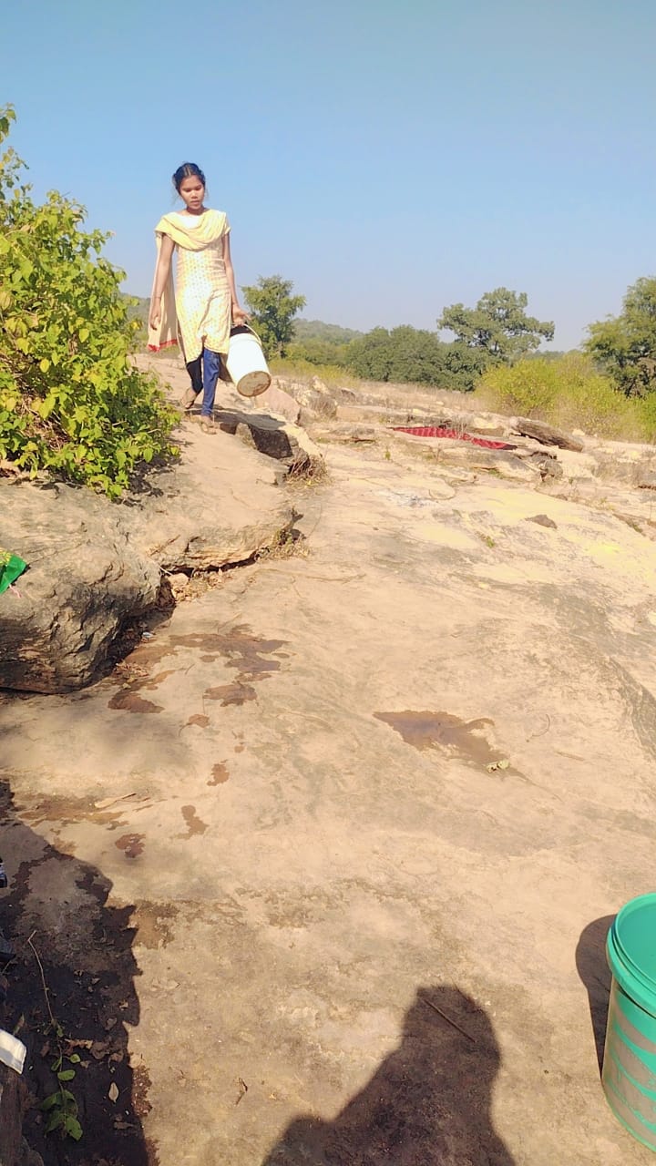 As the country is celebrating Amrit Mahotsav (75 years of independence), women, children and youth in the village are forced to walk one kilometer daily to collect water from the chuaad. The water here is neither clean nor suitable for drinking, yet it is the only available option. Every day, women, children and the elderly spend two to three hours fetching water. Each person must make at least 8-10 trips to chuaad per day.