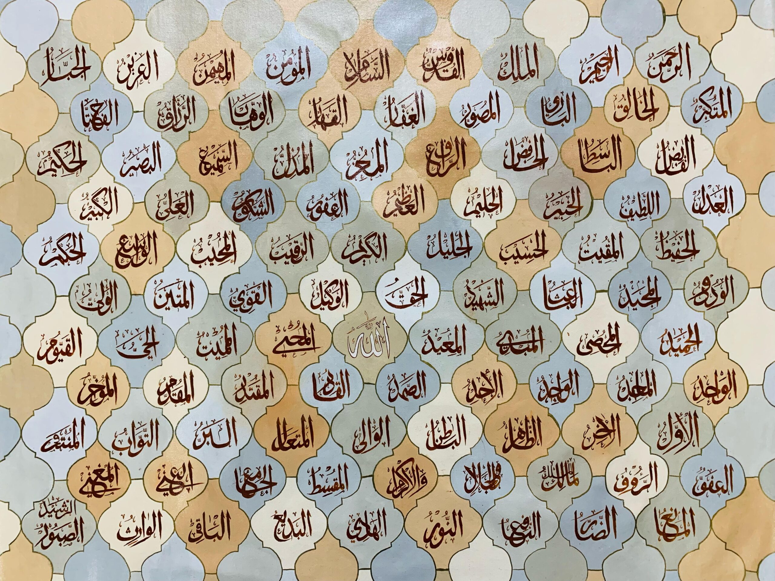Resin wall frame with 99 names of Allah[/caption]
