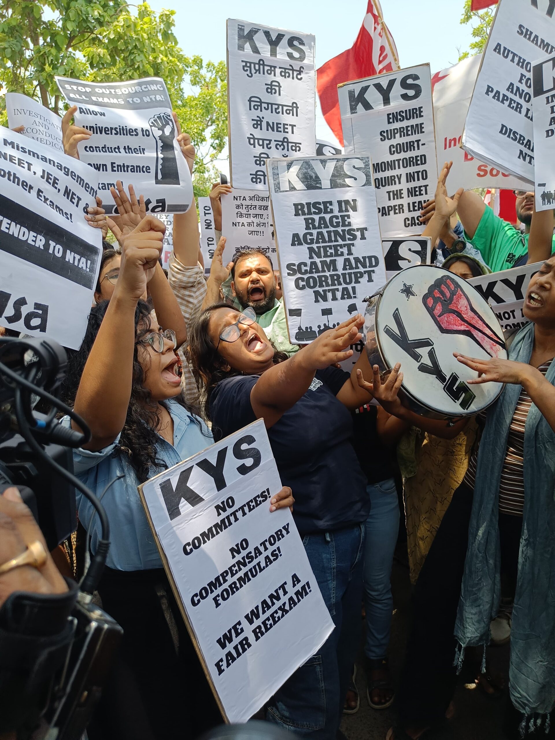 Beyond decrying the “NEET scam” itself, the demonstrators also expressed discontent with the current education system — citing concerns over the centralization of education through initiatives like the Common University Entrance Test (CUET) for undergraduate and postgraduate programmes, the compulsory University Grants Commission–National Eligibility Test (UGC-NET) criteria for Ph.D. admissions and alleged encroachments on universities’ autonomy to conduct its own entrance examinations.