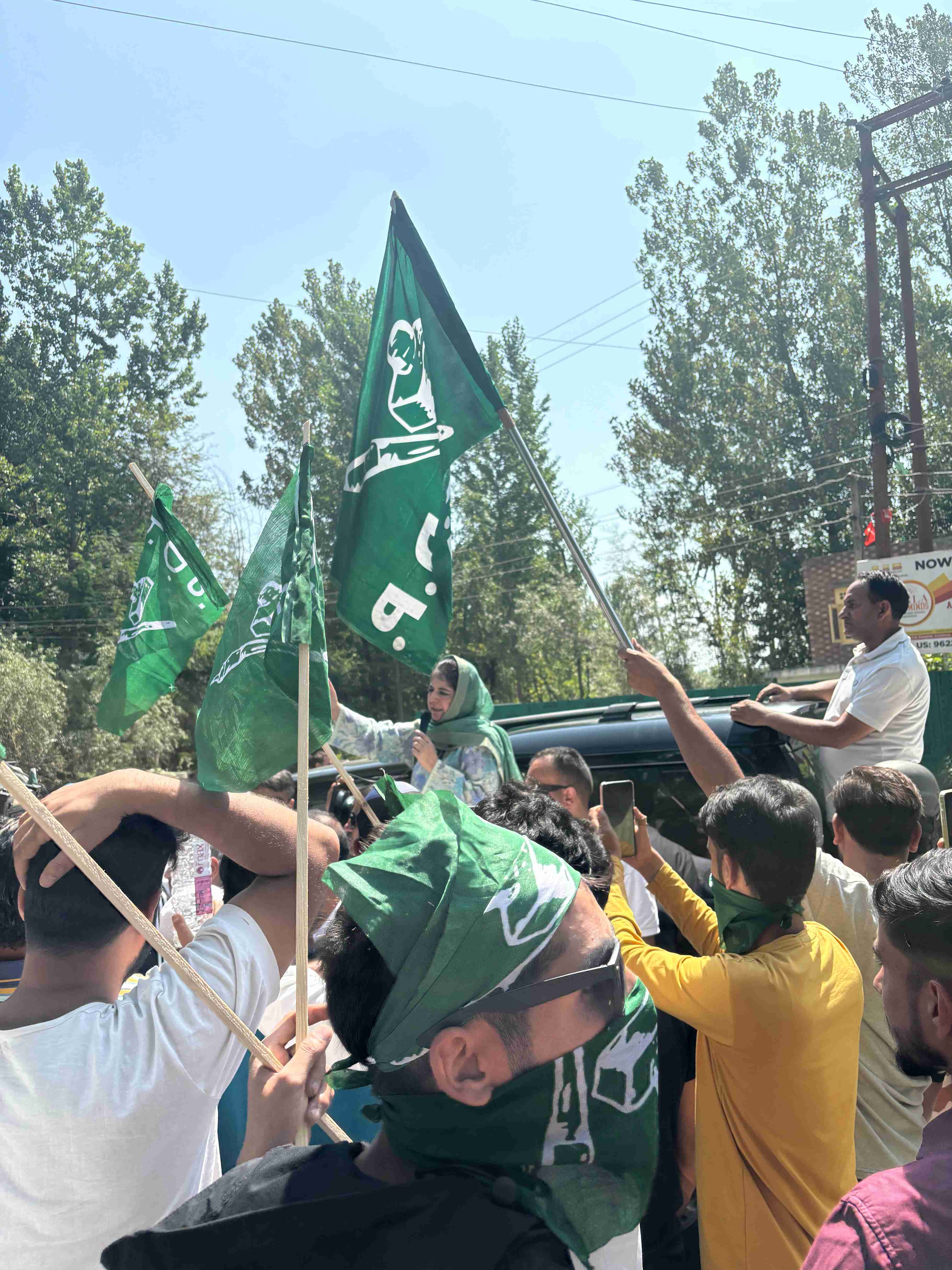 Supporters of PDP waiting for Mehbooba Mufti during a roadshow in Bijbehara. Photo: Aatif Ammad[/caption]