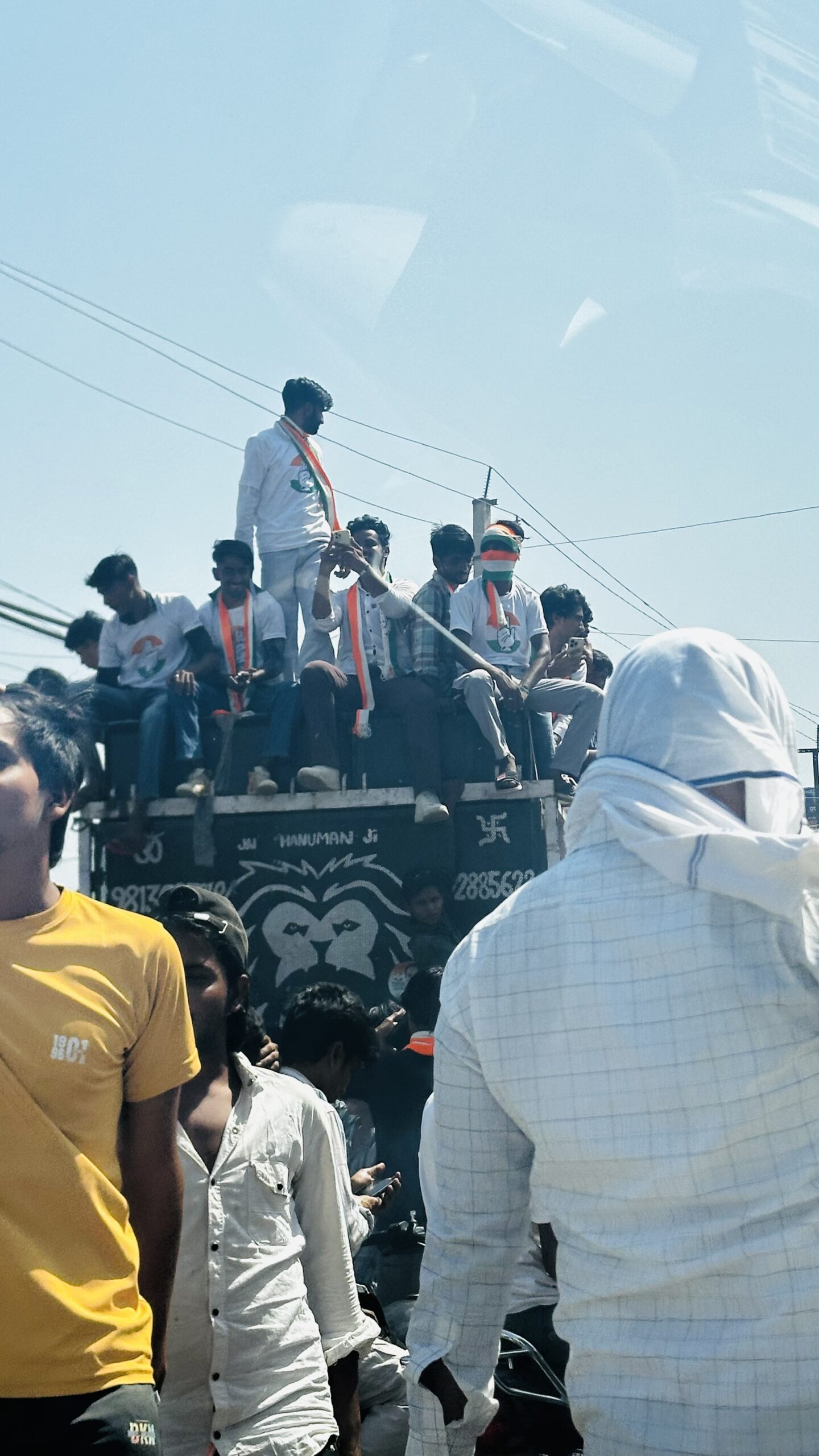A significant number of children, many under the age of 18, cheered joyfully, waving flags with fervor. “Rahul Gandhi aa raha hai (Rahul Gandhi is coming)!” exclaimed 12-year-old Monis, holding a flag almost as tall as he was.