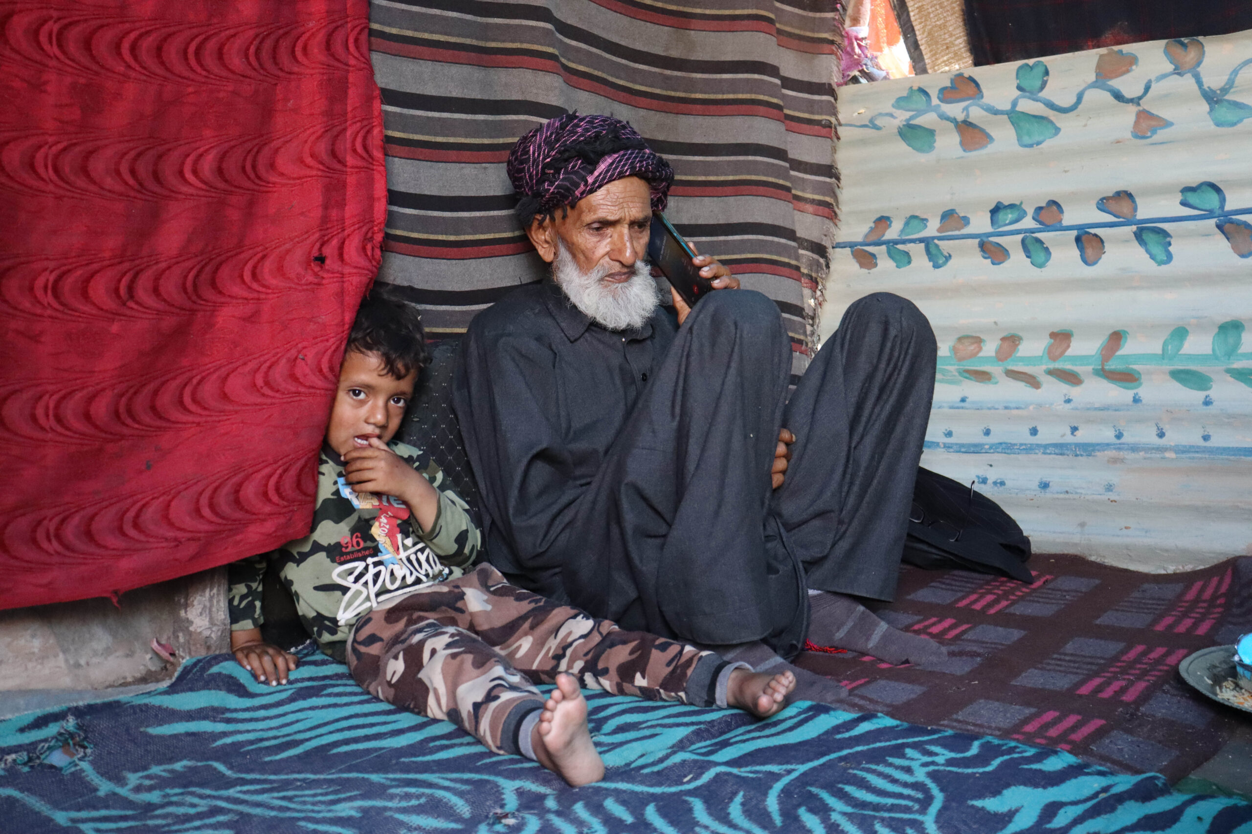 Abdul Rehman, 77 sitting in his tent, called his sons who had traveled from Kashmir to Rajouri a few days earlier with other members of the Bakerwal community to cast their votes in the second phase of elections in Kashmir. Photo by Safoora Hilal[/caption]