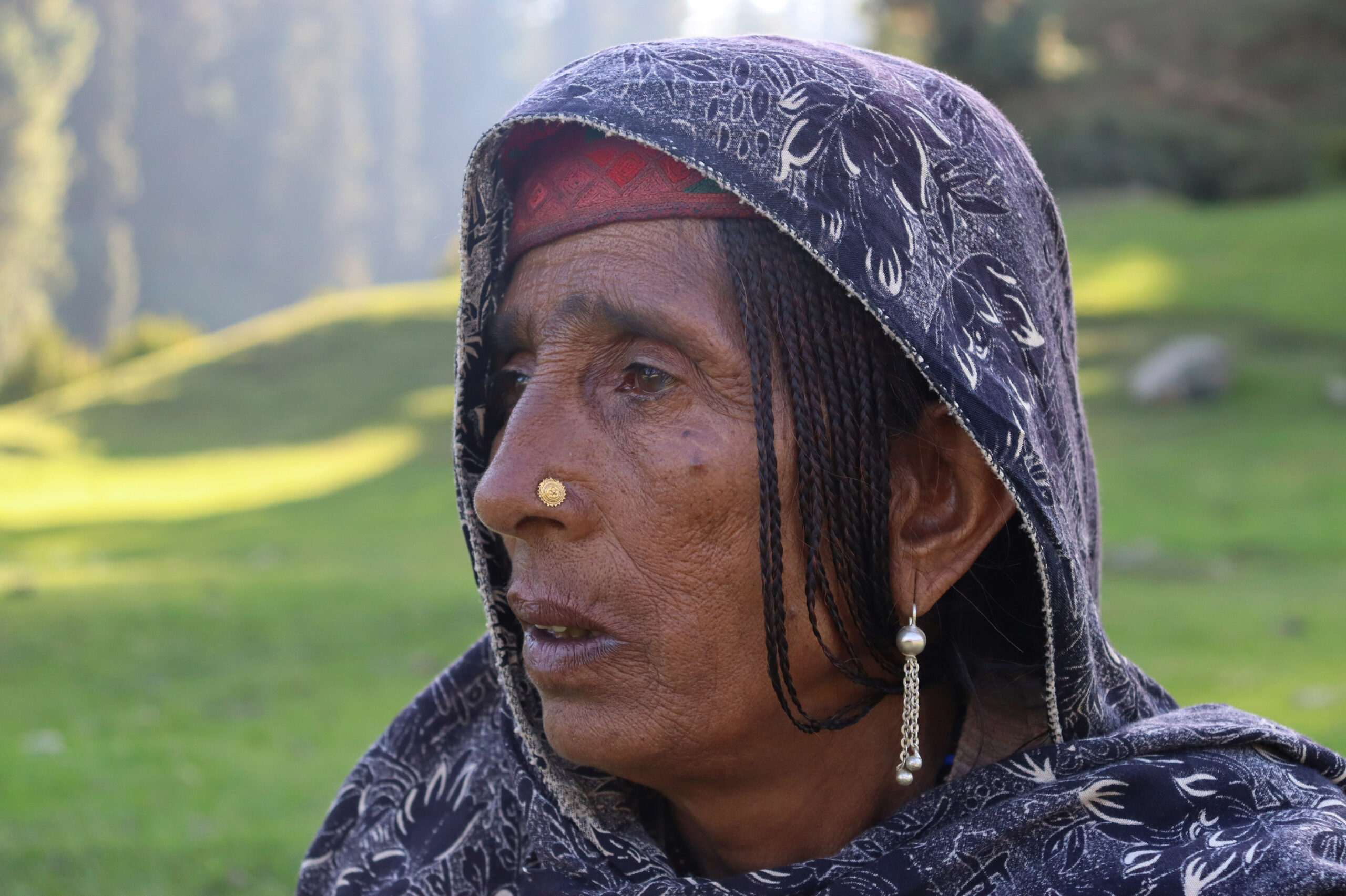 A woman from the Gujjar community, wearing a traditional cap, had her hair styled into small braids and adorned herself with silver ornaments. Photo by Safoora Hilal[/caption]