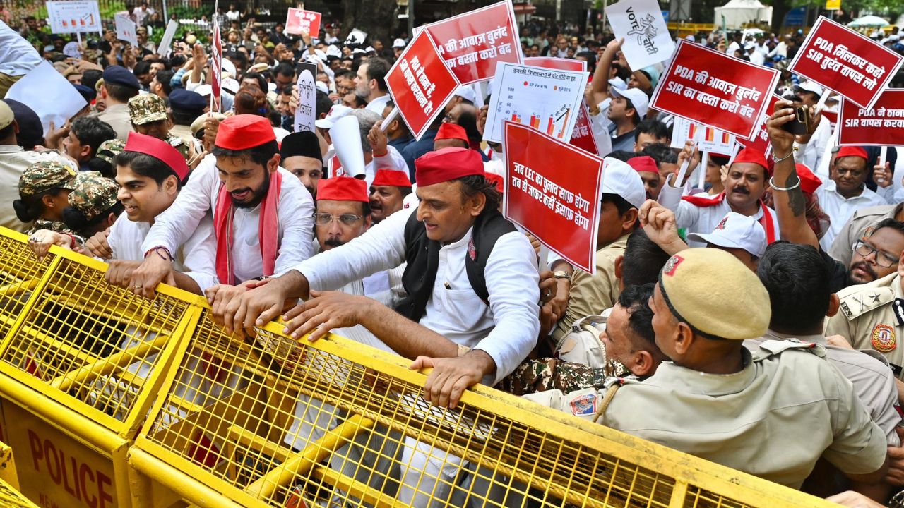 On August 11, the INDIA bloc staged one of its largest protests so far (a march of over 300 MPs in Delhi), raising slogans of “Vote Chori” and wearing caps marked with red crosses over the word “SIR”. Led by Leader of Opposition (LoP) in the Lok Sabha, Rahul Gandhi, the march hit barricades barely a kilometre from Parliament.