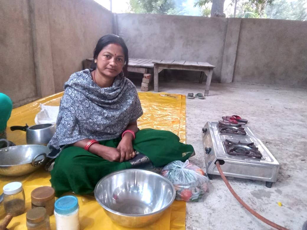 Her sister-in-law was feeling feverish and anxious due to exhaustion. She needed rest, and they were in a state of distress, not knowing what to do. At that time, they noticed a house with a camp right next to the parking area, where some pilgrims were already staying. Some were cooking food in a tin shed.