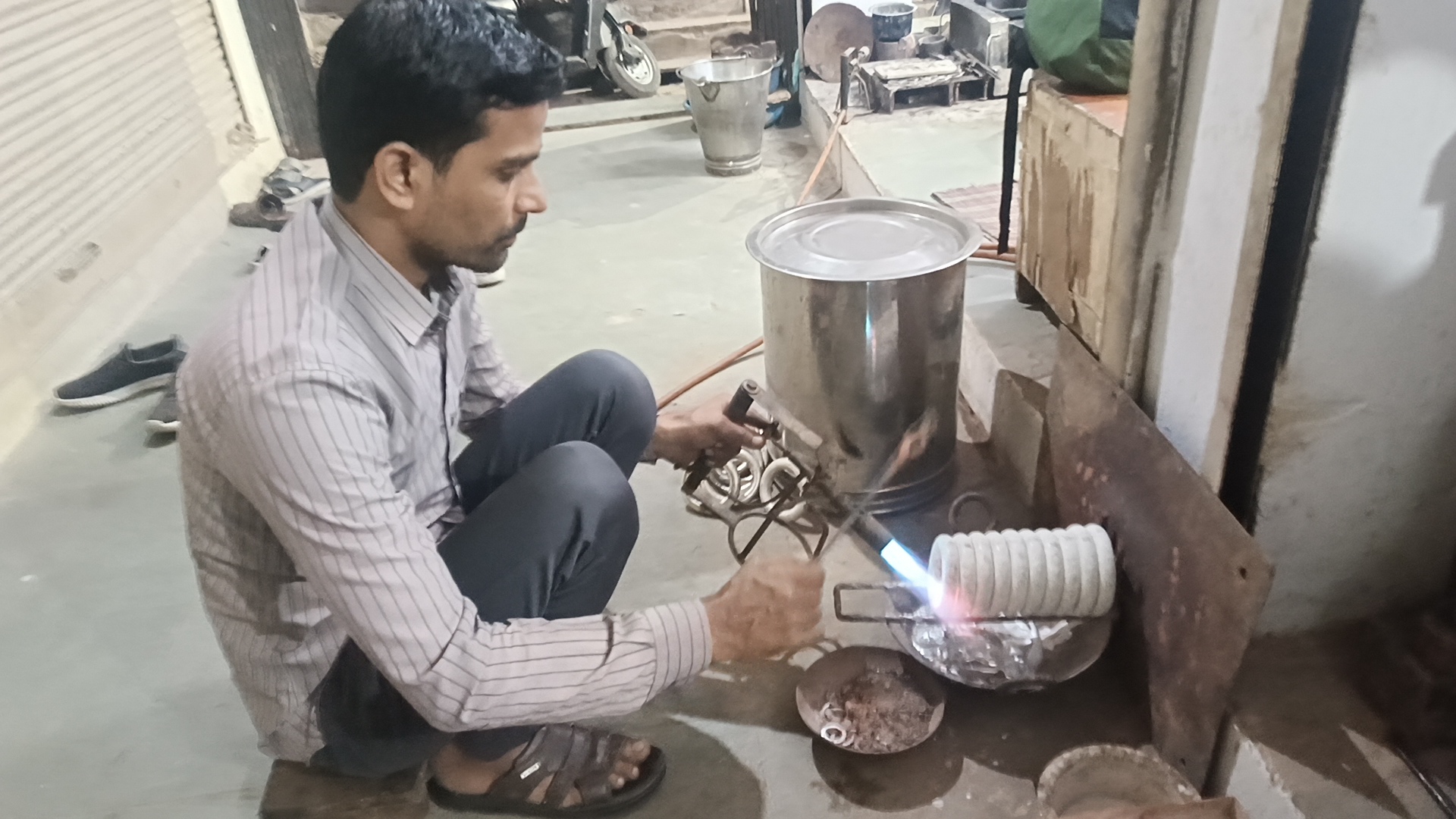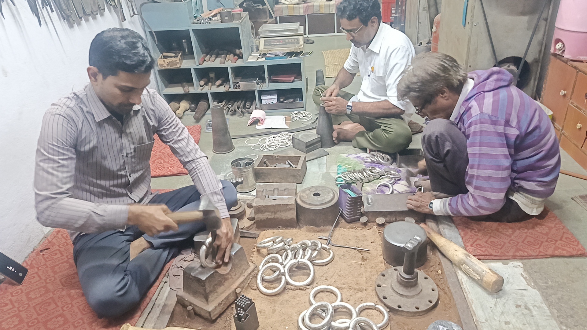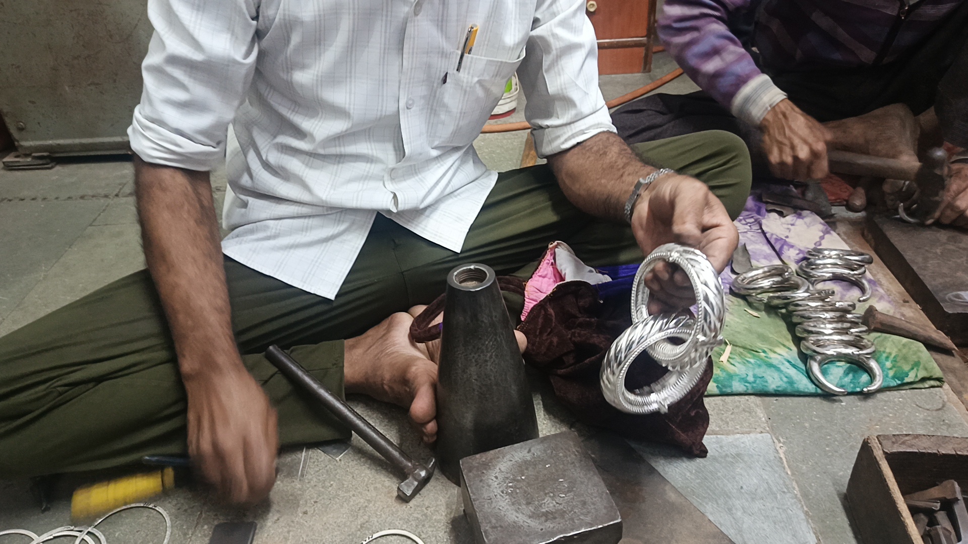 Eliasuddin explains that they specialise in 'Pola' work — a technique that involves crafting silver jewellery, particularly popular in rural areas. "We are from Losal village in Rajasthan's Sikar district. We came from Jaipur to Rajgarh about 55 years ago and began our work in Biawara city. Local gold and silver traders provide us with work, and we design jewellery using our skills. We do not have logos or names on our designs. Most of our work is done by hand, with very little use of machinery. We even create our own tools by hand, as we often need specific designs that are not available in the market," he says.