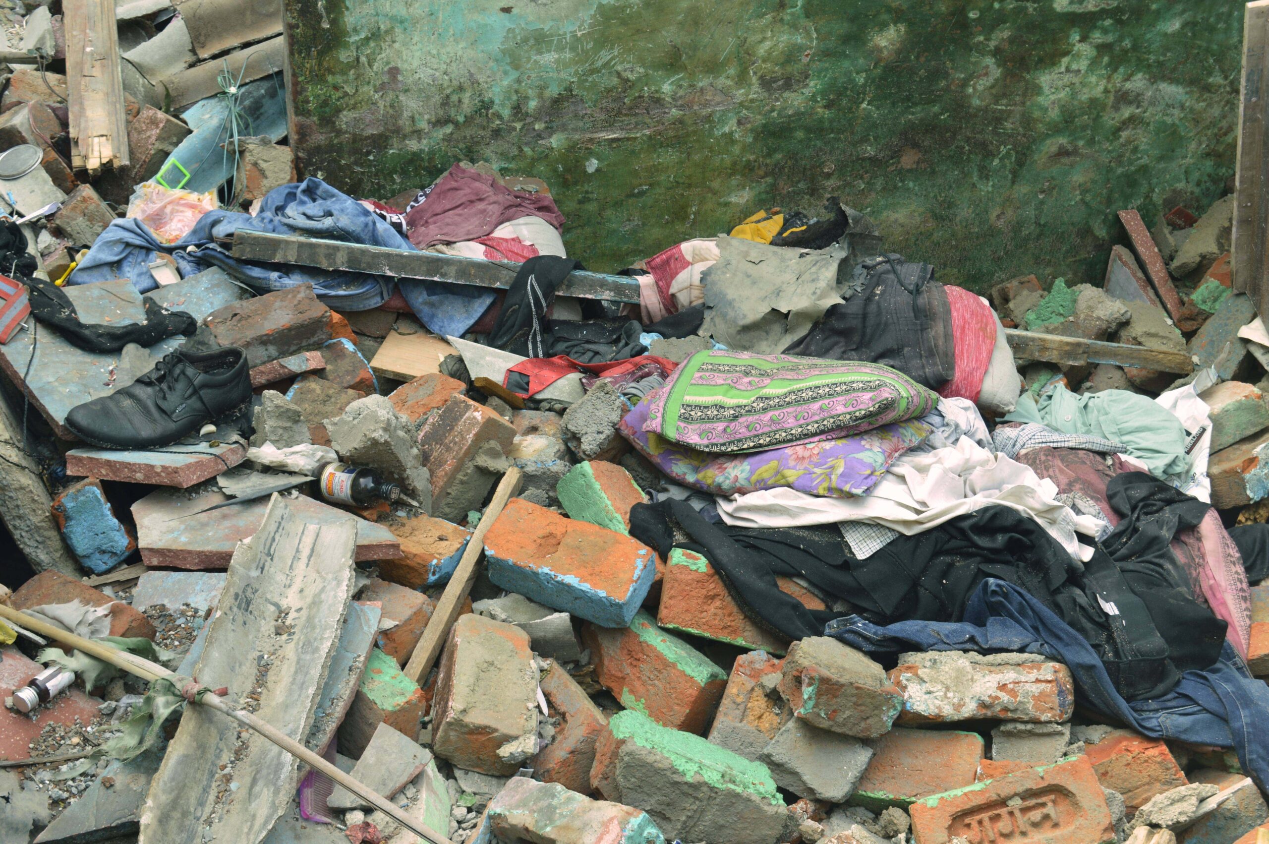 Scattered belongings—shoes, clothes, utensils—lie buried in bricks after bulldozers razed over 300 homes in Jailerwala Bagh. Credit: Photo by Aditya Sharma.[/caption]