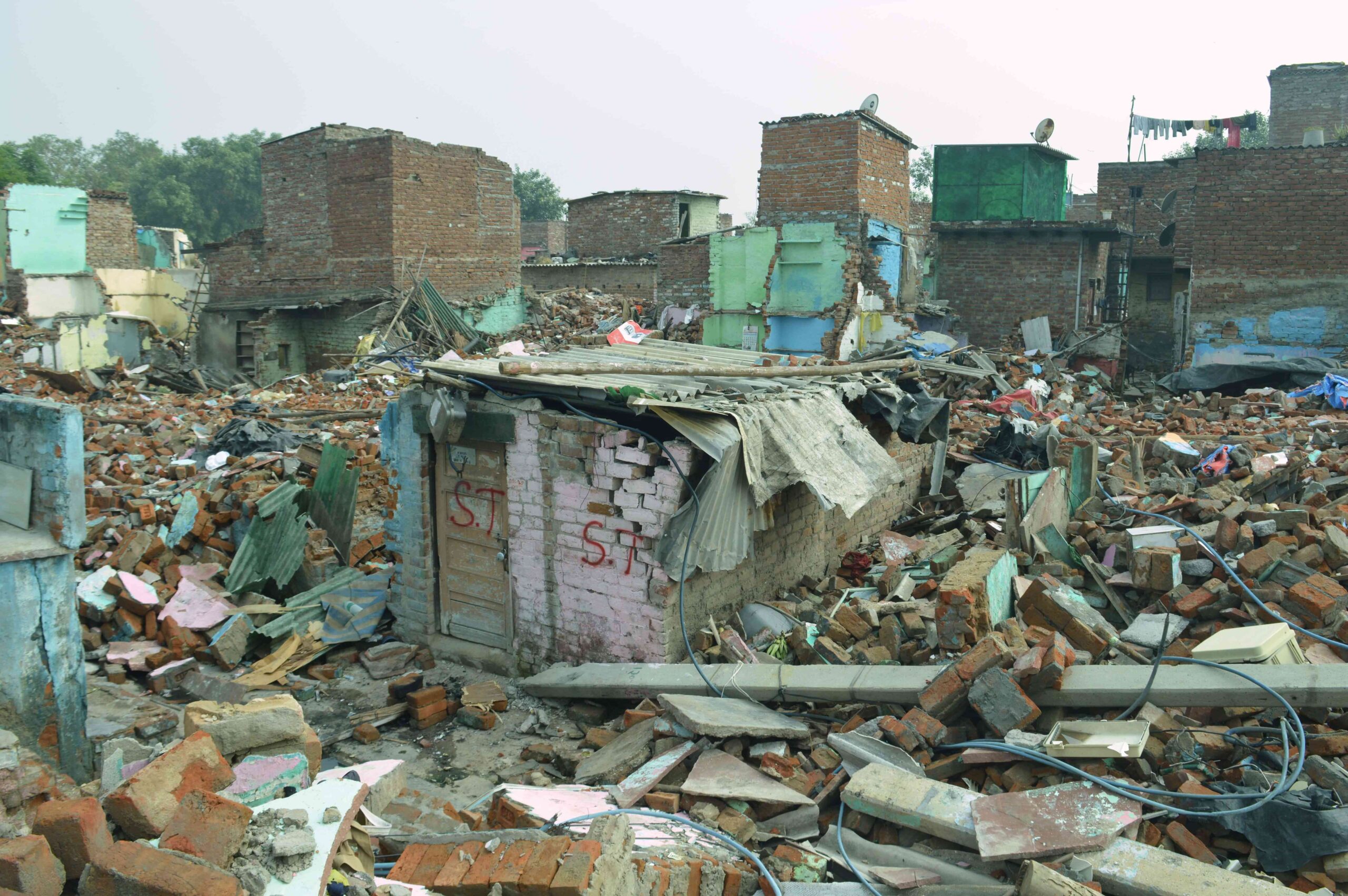 Shanta Devi, a community fellow from the Housing and Land Rights Network described the aftermath. “Clothes buried. Beds under cement. Children looking for their school books under broken walls.”