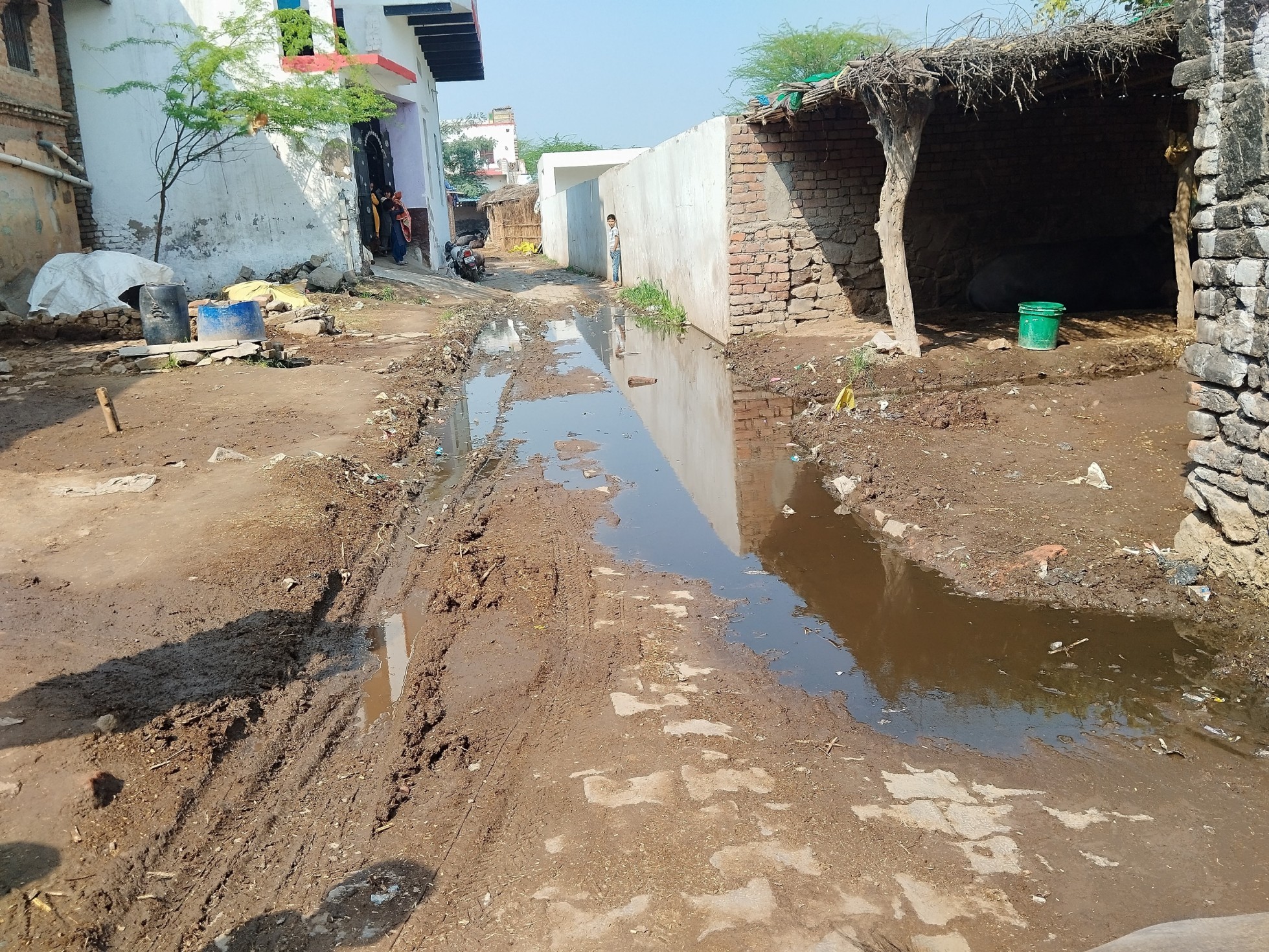 A walk through Valmiki Gaon in Aterna revealed a large open drain at the village entrance, spilling with garbage. Pipes stuck out from corners of homes, supposedly part of the tap water scheme - but they were bone dry.