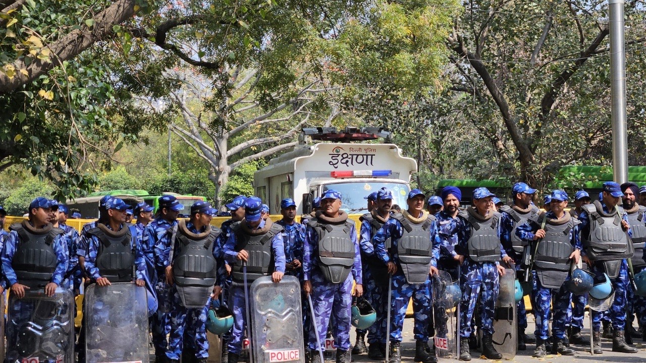 Heavy deployment of security forces at Delhi’s Jantar Mantar as AIMPLB held a massive protest (Courtesy: Syed Abubakr & Sumit Singh)[/caption]