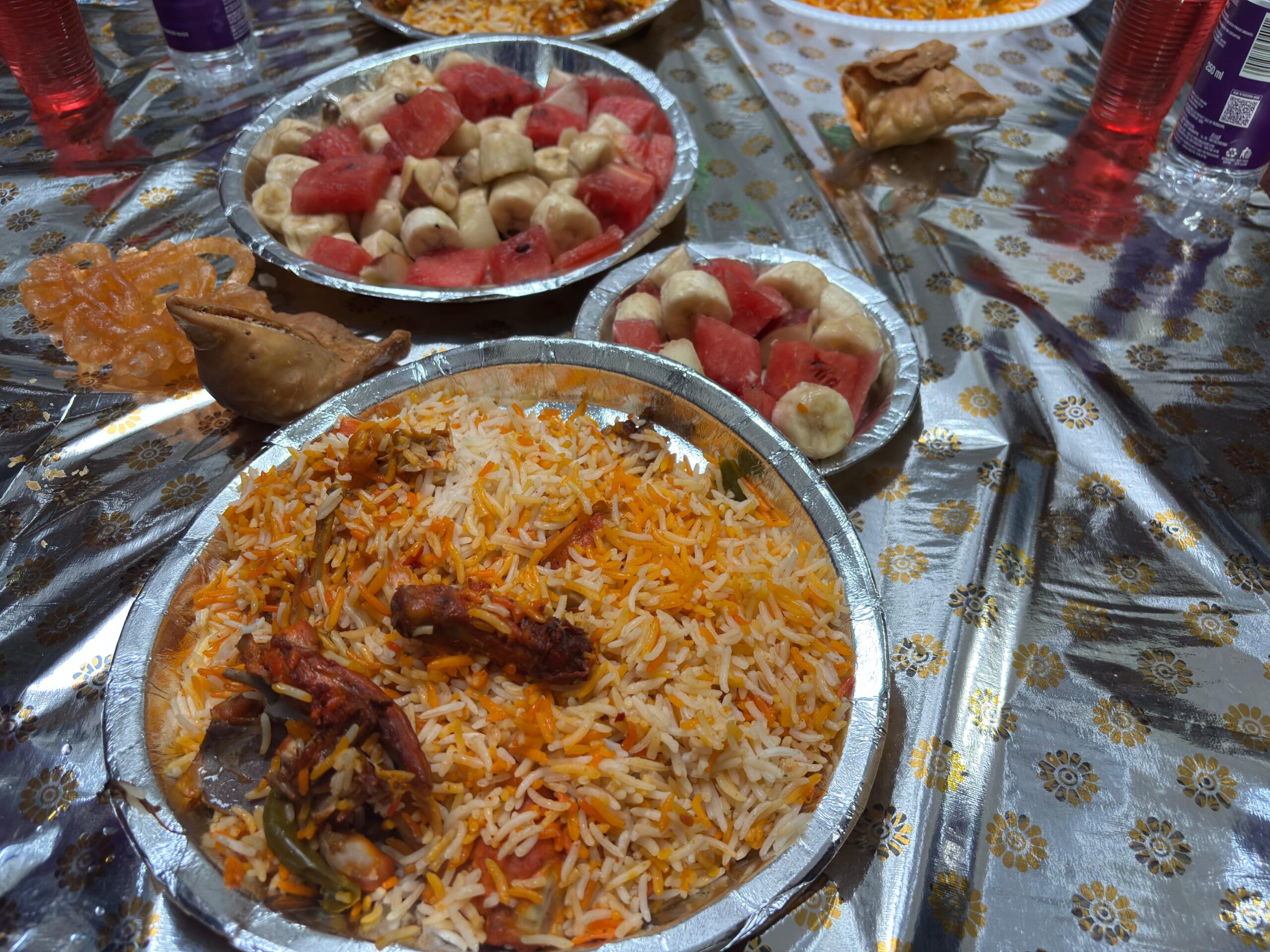 Haris Khan, the iftar manager, said between 300 to 400 people break their fast at the mosque every day. Funded entirely by donations from the local community, the iftar spread includes fruits, juices, biryani, pakoras and kheer. "We feel truly fortunate that those who fast see us as individuals whom they allow to serve them," Haris said.